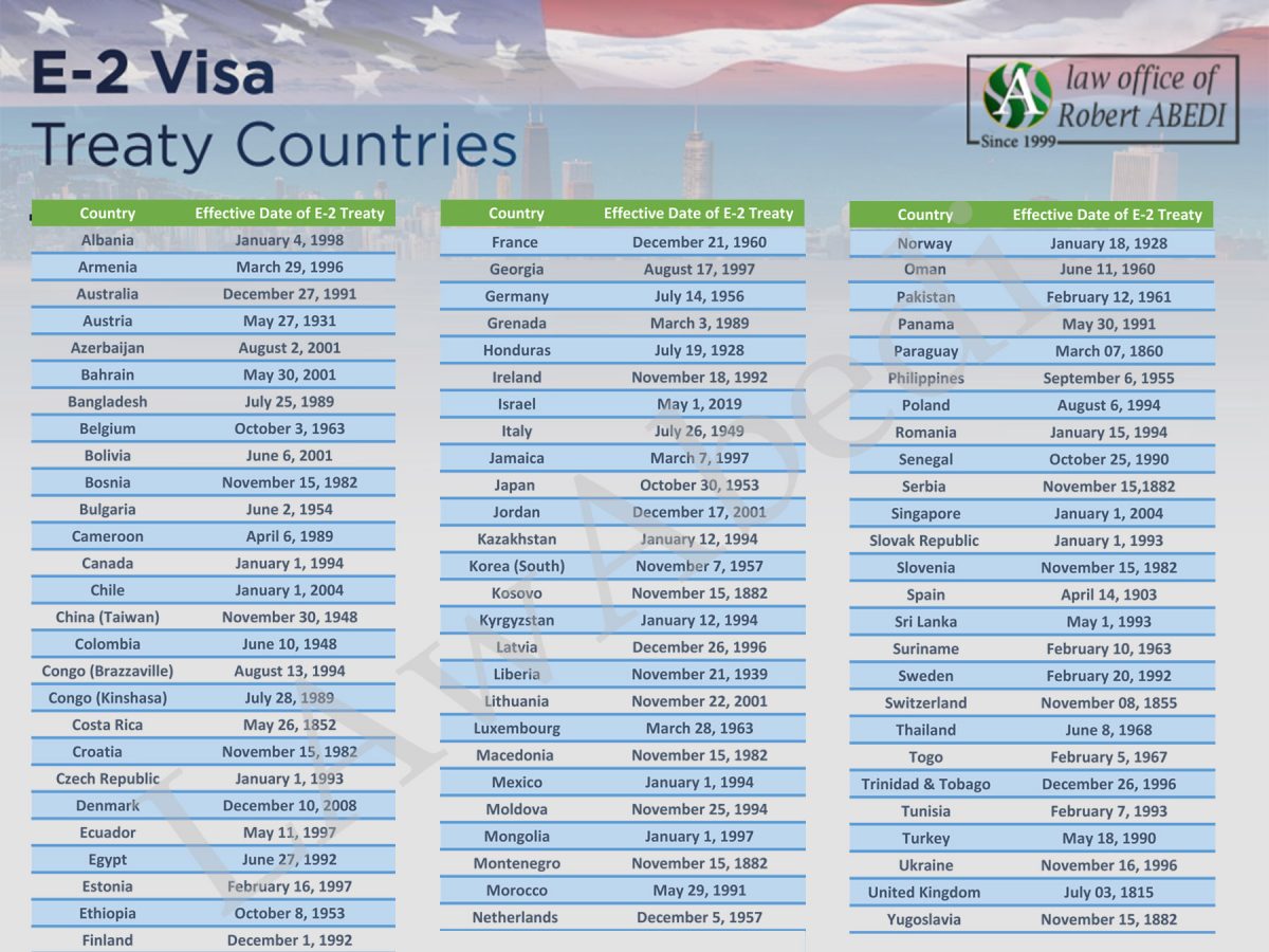 • If your country is not part of the E-2 treaty you can invest in a third country (part of E-2 treaty) and apply for a citizenship through an approved-government agent. Once you have had your citizenship for five (5) years, you will then be able to apply for the E-2 visa.